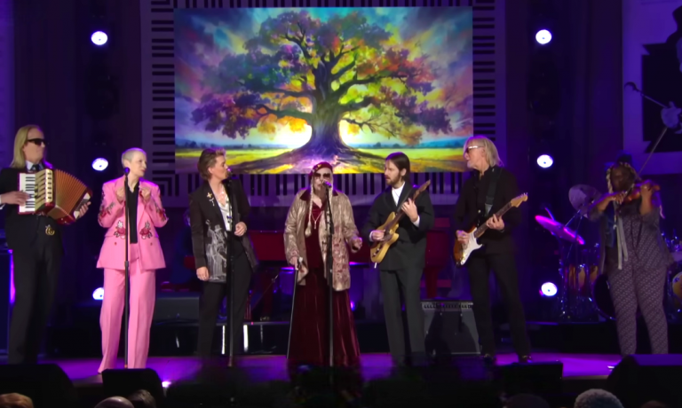 The stage opened with Brandi Carlile, who has long admired both Mitchell and Lennox. Her confident voice set the tone, warm and steady, as she brought modern energy to the classic song. Soon, Annie Lennox, known for her commanding presence and unmistakable tone, stepped in. She lifted the chorus with bold, soaring vocals—part rock, part soul, all heart.