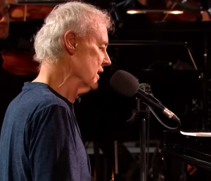 Hornsby’s voice, still rich and smooth, carried a gentle storytelling tone as he sang the familiar lines. Each lyric felt a little more intimate in the quiet studio setting, and he delivered them with a soft emotional touch that made the message hit even deeper. The BBC Concert Orchestra added a beautiful layer of sound behind him. Soft strings swelled at just the right moments, giving the chorus a cinematic lift without overpowering the piano’s heart.