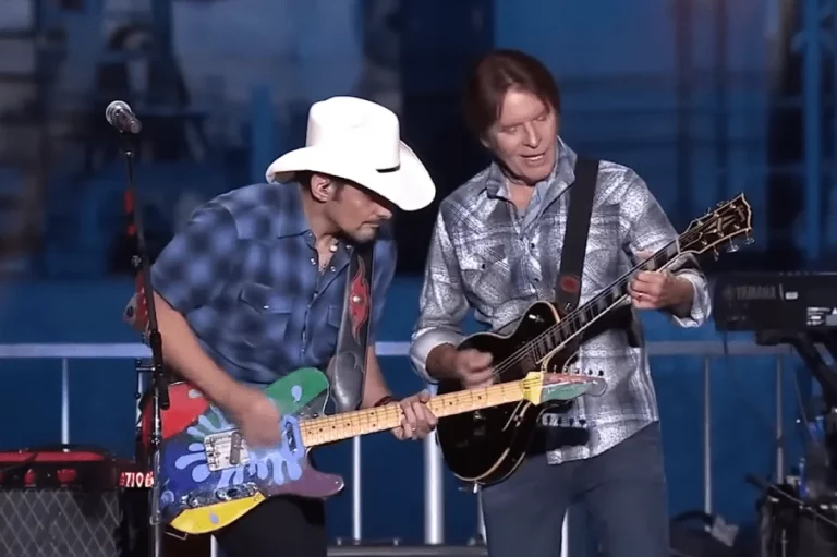 The two musicians played off each other’s energy, sharing smiles and nods as they rocked the stage together. With Paisley’s signature guitar licks and Fogerty’s legendary vocals, they created a fresh take on the song that had the audience cheering for more.