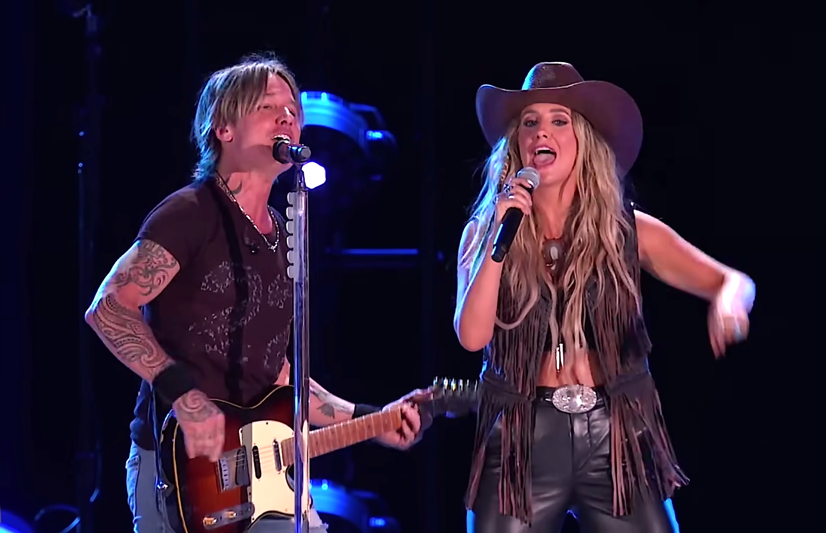 Keith Urban, ever the cool and charismatic performer, greeted Lainey like an old musical partner in crime. True to form, she showed up in her signature bell bottoms and fringe top — all confidence and country flair. Together, they launched into “Messed Up As Me,” a fun, rowdy anthem about finding someone just as flawed as you. Their voices blended perfectly — his rugged rasp meeting her soulful, twangy tone — and it felt like they were born to share the mic.